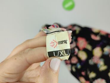 Czarna sukienka damska z białymi groszkami na górnej części i gładkim dołem. Sukienka ma okrągły dekolt i krótkie, luźne rękawy, co zapewnia swobodę ruchów. Dół sukienki jest dopasowany, podkreślaj...Sukienka Moraj L/XL – czarna w kwiaty