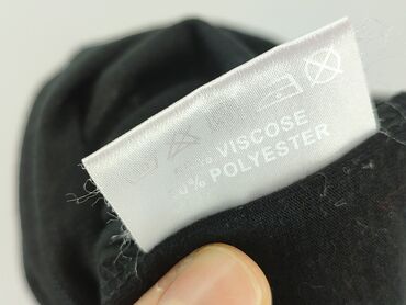 Czarna sukienka z krótkim rękawem - Krój: luźny, rozszerzany ku dołowi, z miękkimi marszczeniami; głęboki, zaokrąglony dekolt. - Długość: midi (na zdjęciach sięga za kolano). - Materiał: 50% wisko...