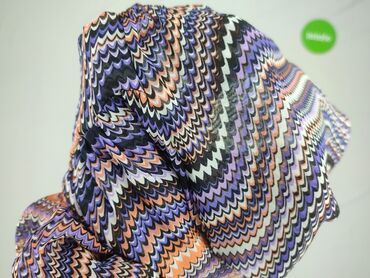 ŚwiętaSukienka damska z lekkiej, zwiewnej tkaniny w wielobarwny, falujący wzór (fiolety, lila, brzoskwinia, czerń, biel).