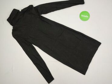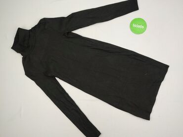 Czarna sukienka-sweterek z golfem, rozmiar S. - Fason: dopasowany, długość przed kolano, rękawy 3/4. - Materiał: 70% poliakryl, 30% wełna (metka na zdjęciu). - Golf szeroki, prążkowany. - Przód...