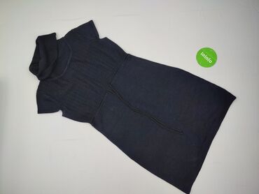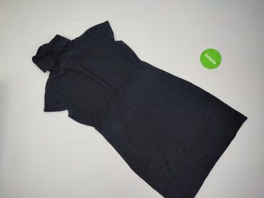 Czarna sukienka-sweterek z golfem, rozmiar S. - Fason: dopasowany, długość przed kolano, rękawy 3/4. - Materiał: 70% poliakryl, 30% wełna (metka na zdjęciu). - Golf szeroki, prążkowany. - Przód...