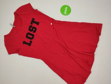 Czerwona sukienka damska z okrągłym dekoltem. Sukienka ma krótkie rękawy z falbankami, a w talii znajduje się elastyczne marszczenie, które nadaje jej rozkloszowany fason. Wykonana jest z materiału...Czerwona sukienka z krótkim rękawem marki chillin (metka: “FUNK THEM ALL”), rozmiar XL.