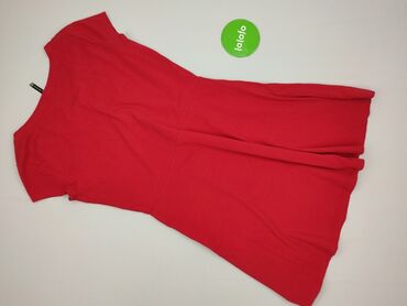 Czerwona sukienka dzienna - Krój prosty, lekko trapezowy, długość do kolan. - Okrągły dekolt. - Rękawy do łokcia z falbaną na zakończeniu. - Gładka, jednolita tkanina o średniej grubości; elastycz...