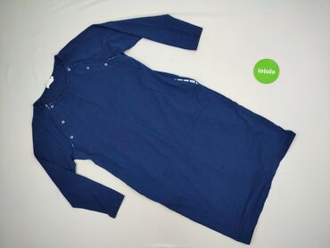 Sukienka damska w paski - Fason: prosta, lekko dopasowana, długość za kolano - Wzór: poziome granatowo-białe paski, akcenty w kolorze czerwonym przy mankietach oraz przy dekolcie - Rękawy: 3/4 - D...
