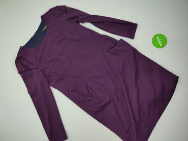 Sukienka damska koktajlowa w kolorze głębokiego fioletu. - Krój: dopasowana, ołówkowa, bez rękawów; szerokie ramiączka, dekolt w kształcie litery U. - Długość: midi (za kolano). - Zapięcie: kryty ...
