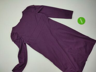 Sukienka damska w kolorze głębokiego fioletu. - Krój: ołówkowy, długość midi - Rękaw: 3/4 - Dekolt: kopertowy z efektownym marszczeniem i węzłem przy biuście - Tkanina: elastyczna dzianina z połys...