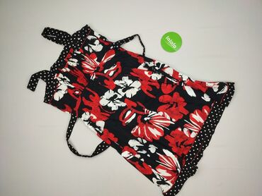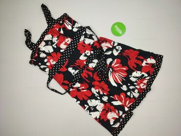 - Kolor i wzór: czarne tło z dużym, kontrastowym printem kwiatowym w czerwieni i bieli; wstawki w groszki (czarno-białe) przy dekolcie, w pasie i u dołu.