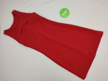 Czerwona sukienka midi bez rękawów - Marka: Camileu (metka widoczna na zdjęciu) - Fason: dopasowana góra z cięciami modelującymi, pas z poziomymi zakładkami/lamówkami, dół lekko rozszerzany do ko...