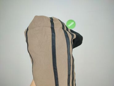 Sukienka damska z dzianiny, ołówkowa, w kolorach beż–karmel–ecru. - Krój: dopasowany, długość za kolano, rękaw 3/4 - Dekolt: łagodnie łódkowy - Zapięcie: zamek na plecach - Wzór: szerokie poziome ...