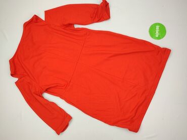 Czerwona sukienka ołówkowa, rozmiar L. - Fason: kopertowy dekolt z zakładką, krótkie rękawy, dopasowana sylwetka z delikatnym marszczeniem po boku. - Długość: midi (sięgająca poniżej kolana). - Mat...