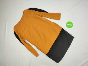 Sukienka damska w kolorze musztardowym - Fason: góra dopasowana z długim rękawem, dół z szerokimi, miękko układającymi się pasami/zakładkami tworzącymi efekt plisowania - Dekolt: okrągły - Zapięci...