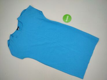 Sukienka damska bez wzorów, kolor turkusowy. - Krój prosty, długość przed kolano. - Okrągły dekolt. - Rękawy krótkie z falbankami. - Rozmiar z metki: L. - Materiał: 100% poliester (informacja na me...