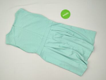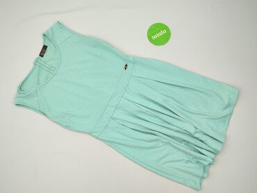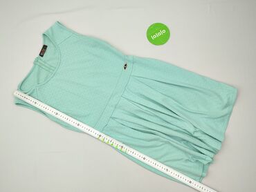 Sukienka damska w kolorze miętowym, bez rękawów, z szerokim, zaokrąglonym kołnierzem typu Peter Pan. Materiał z tłoczonym, wypukłym wzorem paisley/kwiatowym na całej powierzchni, nadającym elegancj...