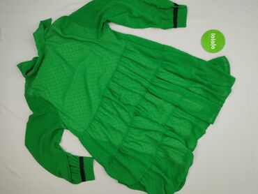 Sukienka koszulowa w kolorze soczystej zieleni - Fason: koszulowy, zapinany w całości na guziki z przodu - Długość: mini, z falbaną u dołu - Rękawy: długie, lekko bufiaste, zapinane na guziki przy...