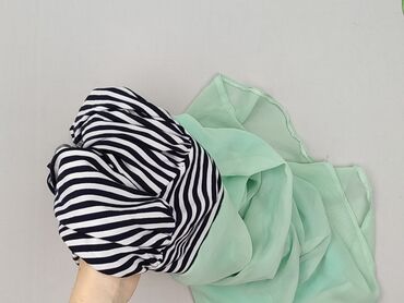 - Góra: czarno-białe, wąskie paski; dekolt w serek; krótkie rękawy.