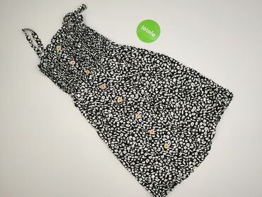 Sukienka letnia na ramiączkach, rozmiar S/M. - Wzór: tropikalny motyw liści na czarnym tle, w odcieniach różu, zieleni i ecru. - Krój: luźny, z marszczeniami/ściągaczami w pasie i przy dekolcie, ...