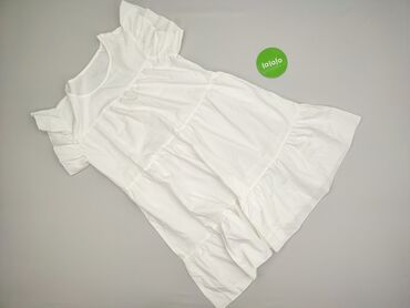 Biała sukienka z ażurowej bawełny (ang. broderie anglaise) - Krój: lekko rozkloszowany, długość mini - Dekolt w kształcie litery V z falbankami z przodu - Krótkie, zakrywające ramiona rękawki - Sz...