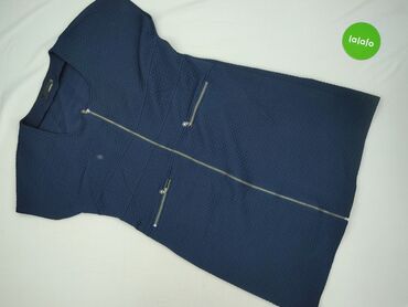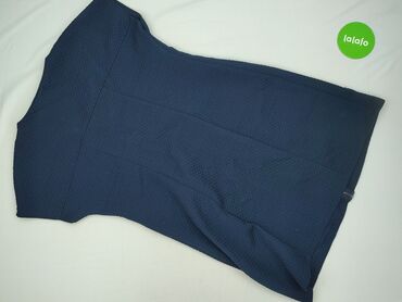 Granatowa sukienka Fasone, rozmiar L - Krój ołówkowy, długość przed kolano - Dekolt okrągły - Góra i krótkie rękawki z półtransparentnej siateczki - Materiał elastyczny, gładki, bez wzorów - Z tył...