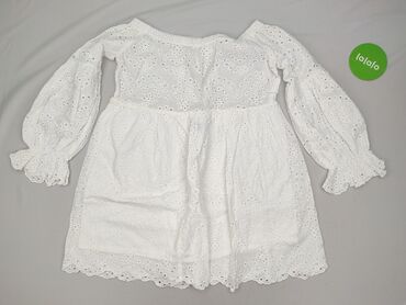 Biała sukienka z krótkimi, bufiastymi rękawami - Krój: rozszerzana spódnica od linii talii, lekko marszczona; kwadratowy dekolt z przodu i z tyłu - Rękawy: krótkie, mocno bufiaste - Długość: mini/...