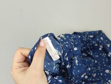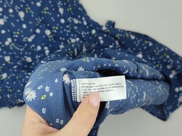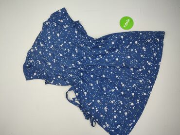 Sukienka damska w kwiaty, rozmiar 40 - Fason: lekko rozkloszowana, z krótkim rękawem - Dekolt: okrągły - Print: gęsty, kwiatowy na granatowym tle (odcienie niebieskiego, ecru i czerwieni) - Materi...