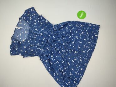Sukienka damska z krótkim rękawem, w kolorze granatowym z białym kwiatowym wzorem. Charakteryzuje się dekoltem w kształcie litery V i zapięciem na białe guziki z przodu. Prosty krój i lekki materia...
