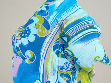 - Wzór i kolory: wielobarwny print w odcieniach niebieskiego, turkusu, zieleni, fioletu i żółci; motywy kwiatowe i falujące linie