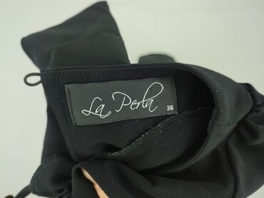Sukienka La Perla, rozmiar 36 - Krój: mini z wielowarstwowymi falbanami u dołu - Dekolt: hiszpański/ściągany na gumkę, z wiązaniem z tyłu - Rękawy: długie, bufiaste, zakończone gumką - Wzór: delik...