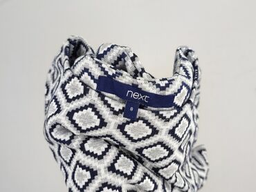 Sukienka damska Next - Marka: Next - Rozmiar: UK 16 / EUR 44 - Fason: prosta, dzianinowa, z krótkim rękawem - Wzór: geometryczny/aztecki w odcieniach jasnoszarego, błękitu i ecru, ułożony w poziom...