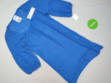 Niebieska sukienka o długości do kolan, wykonana z mieszanki poliestru i elastanu, co zapewnia jej elastyczność i komfort noszenia. Sukienka ma okrągły dekolt i krótkie rękawy. Dół sukienki zdobi w...