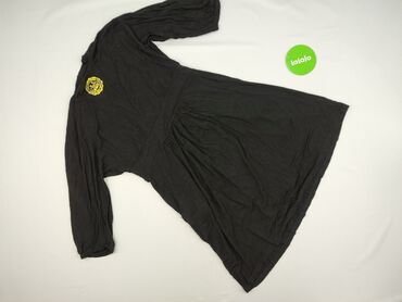 Sukienka damska House – rozmiar S - Krój: zwiewna, z długim rękawem i lekko rozkloszowanym dołem - Dekolt: okrągły z wiązaniem na troczki - Wzór: kwiatowy na czarnym tle (różowo–żółte bukiety, zie...
