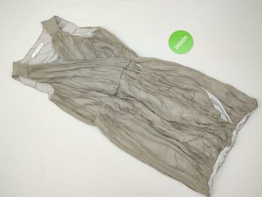Sukienka damska Zara - Fason: luźna, z odcinaną talią i marszczoną, rozkloszowaną dolną częścią - Rękaw: krótki - Dekolt: okrągły - Kolor: jasnoszary / beżowy (melanż) - Materiał: cienka, miękka d...