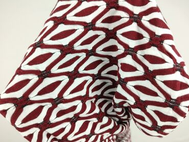 - Wzór: geometryczny, bordowo-biały, powtarzalny motyw „oczka”