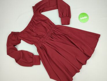 Sukienka damska w kolorze burgundowym - Krój: mini, z odcięciem i marszczeniem w talii, które podkreśla sylwetkę - Rękawy: długie, zakończone tunelami ze ściąganymi troczkami do zawiązania - Dekol...Stan: