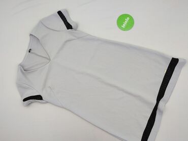 Sukienka damska w kolorze jasnoszarym. - Krój: luźny, prosty top z efektowną falbaną u dołu (asymetryczne wykończenie). - Rękawy: krótkie. - Dekolt: okrągły. - Zapięcie: z tyłu na mały guzik. - Dł...