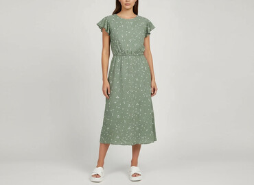 Sukienka damska w roślinny wzór - Rozmiar z metki: EUR 36 (US 6, FR 6, CN 165/84A) - Fason: lekko rozkloszowany dół, talia odcięta zaszewkami - Rękaw: 3/4 - Dekolt: okrągły - Długość: do kolana - ...
