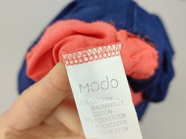 Sukienka damska Moodo, rozmiar S. - Fason: prosty, t-shirtowy, z krótkim rękawem - Wzór: granatowe tło w białe, poziome paski (styl marynistyczny) - Dekolt: okrągły - Talia: wiązana pomarańczowym s...
