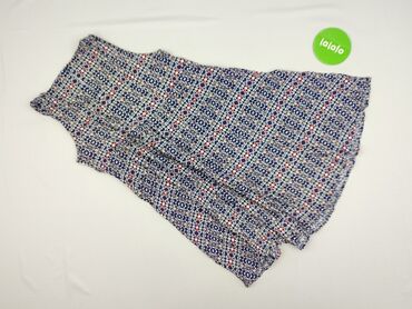 Sukienka bez rękawów, rozmiar 38. - Kolor i wzór: granatowo-biały, geometryczny nadruk w romby/kwadraty. - Krój: luźna góra bez rękawów, w pasie wszyta gumka ze sznurkiem do ściągnięcia, spódnica ...