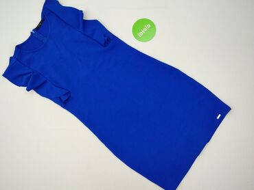 Sukienka damska Mohito Collection, rozmiar XS. - Kolor: chłodny odcień niebieskiego/royal blue - Krój: prosta, lekko trapezowa, długość do kolan - Rękawy: 3/4 - Dekolt: okrągły z trójkątnym wycięc...