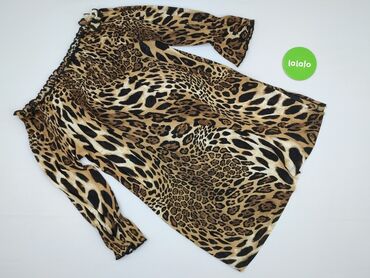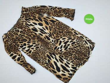 Sukienka damska w panterkowy wzór - Fason: kopertowy dekolt V, dopasowana góra, marszczenia w talii i na biodrach podkreślające sylwetkę, długi rękaw z lekkim bufowaniem na ramionach - Długość: mi...Stan: