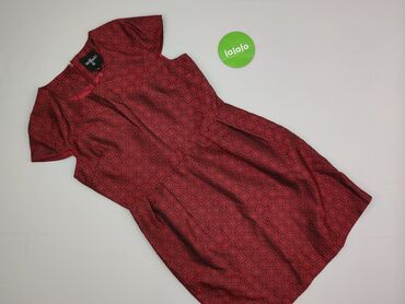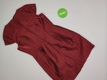Sukienka damska, kolor bordowy. - Rozmiar: M (na metce). - Skład materiału: 65% poliester, 35% bawełna. - Krój: dopasowana góra z krótkim rękawem, rozkloszowany dół. - Dekolt: V z ozdobną, czarną ...