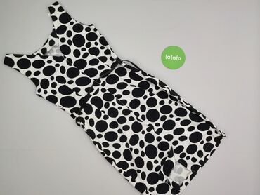 Sukienka F&F na ramiączkach - Fason: dopasowana, prosta, na cienkich ramiączkach - Długość: przed kolano - Wzór: czarne tło w nieregularne białe kropki - Materiał: dzianina elastyczna, miękka i wy...Stan: