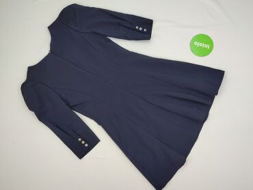 Sukienka H&M – granatowa, damska - Rozmiar: EU 36 (US/CA 6, CN 165/84A) - Fason: mini/krótka tunika - Rękawy: 3/4, mankiety zapinane na guzik - Dekolt: kopertowy z falbaną, częściowo zapinany na g...