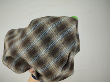 - Wzór/kolor: klasyczna krata w odcieniach brązu, beżu i szarości z delikatnymi niebieskimi akcentami