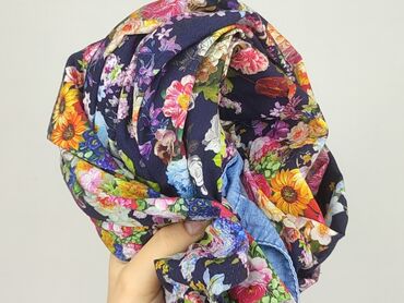 - Wzór: gęsty, kolorowy motyw kwiatowy na granatowym tle.