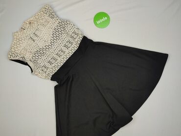 Czarna sukienka „fashion land”, rozmiar S. - Góra z koronką w kwiatowy wzór; półtransparentne, koronkowe rękawy 3/4–długie. - Okrągły dekolt. - Dół z gładkiej, mięsistej tkaniny – rozkloszowany, z...