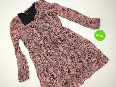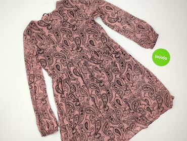 Sukienka mini z długim rękawem – wzór paisley/ornamenty - Kolor bazowy: czarny z beżowo‑brzoskwiniowymi i jasnoróżowymi motywami roślinnymi/paisley - Fason: krótka, rozkloszowana spódnica, taliowa...