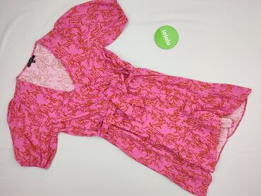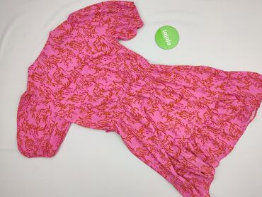 Sukienka damska bez rękawów, rozmiar XL. - Kolor: pastelowy róż z kwiatowym nadrukiem w odcieniach fioletu, błękitu, bieli i czerni - Krój: luźniejsza góra z pionowymi zaszewkami/plisami z przodu, ...