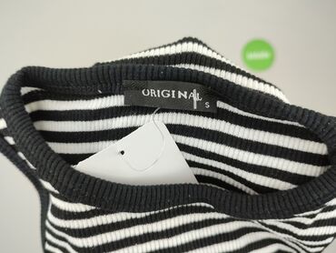 - Wzór: czarno-białe, wąskie poziome paski; kontrastowe, czarne lamówki przy dekolcie i pachach