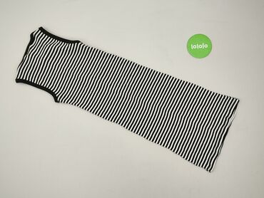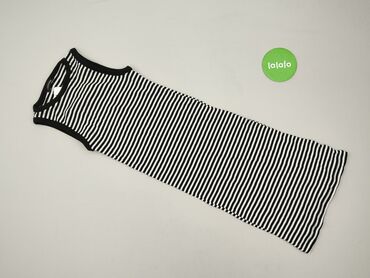 Sukienka damska na ramiączkach w biało‑czarne, poziome pasy. - Krój: dopasowany, tuba/bez rękawów, okrągły dekolt - Długość: sięgająca za kolano (midi) - Rozmiar z metki: 36 - Materiał: elastyczna...