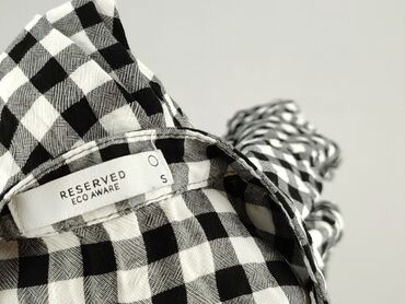 Sukienka damska RESERVED Eco Aware, rozmiar S. - Wzór: klasyczna czarno‑biała kratka (gingham) - Fason: koszulowy, zapinany z przodu na guziki; odcięcie i lekkie marszczenia tworzące subtelne falb...Stan: